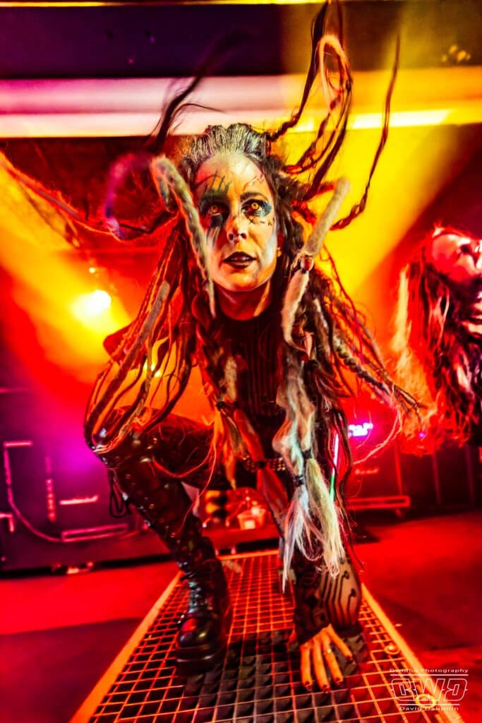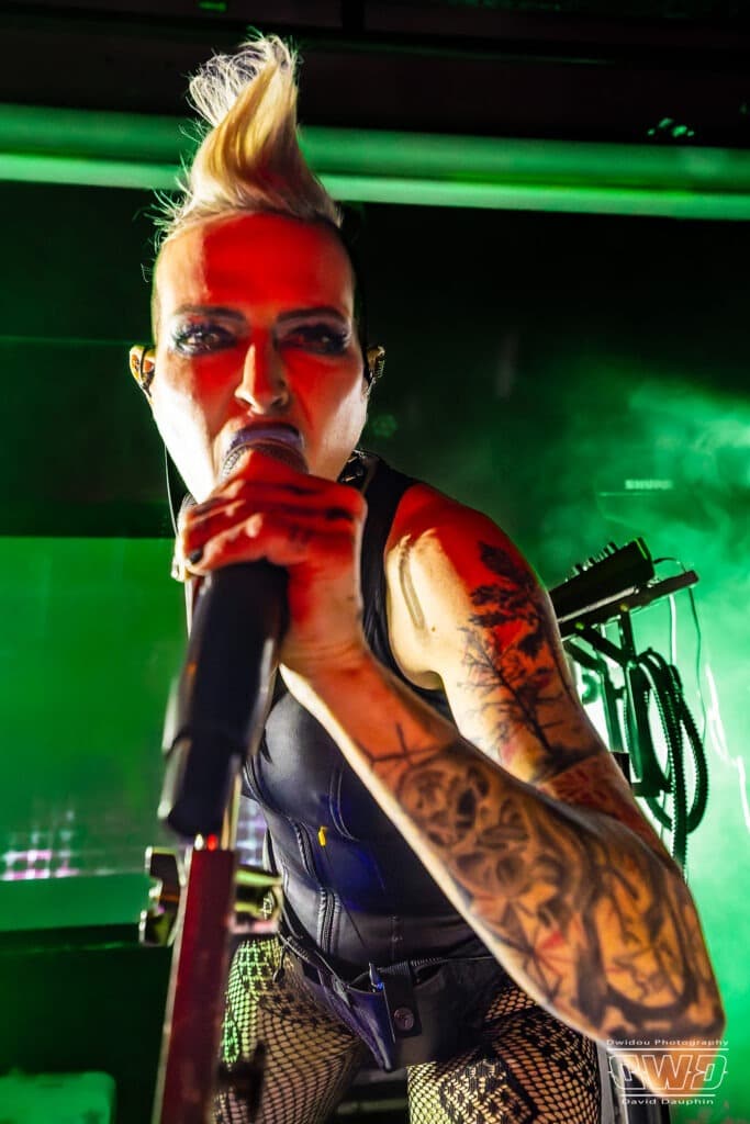 La musique tourne autour d’un electro-metal-indus. Quelques passages sont un peu moins denses, mais au final l’américaine tire son épingle du jeu et recueille les applaudissements du maigre public devant la scène du Backstage By The Mill après sa demi-heure de set.