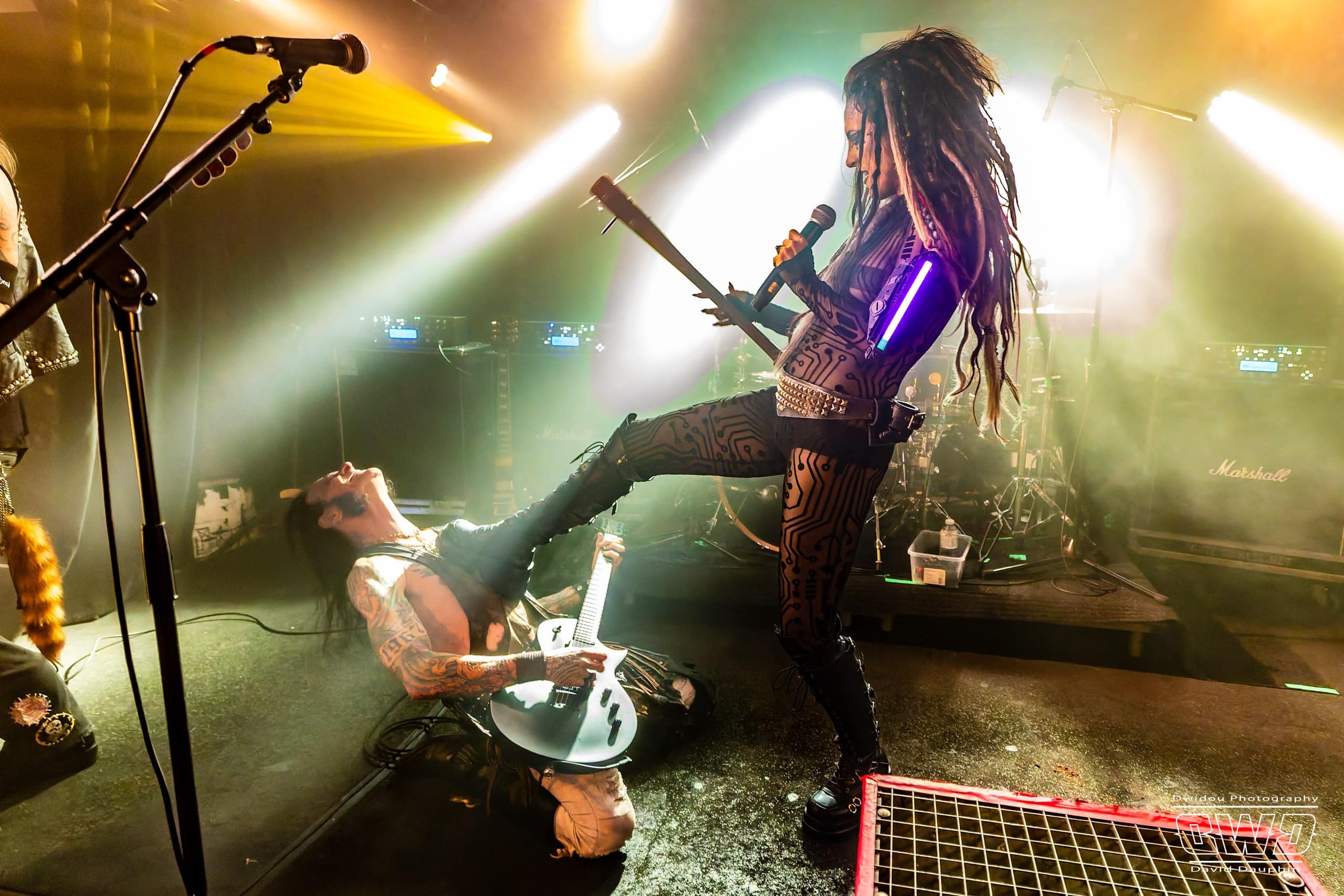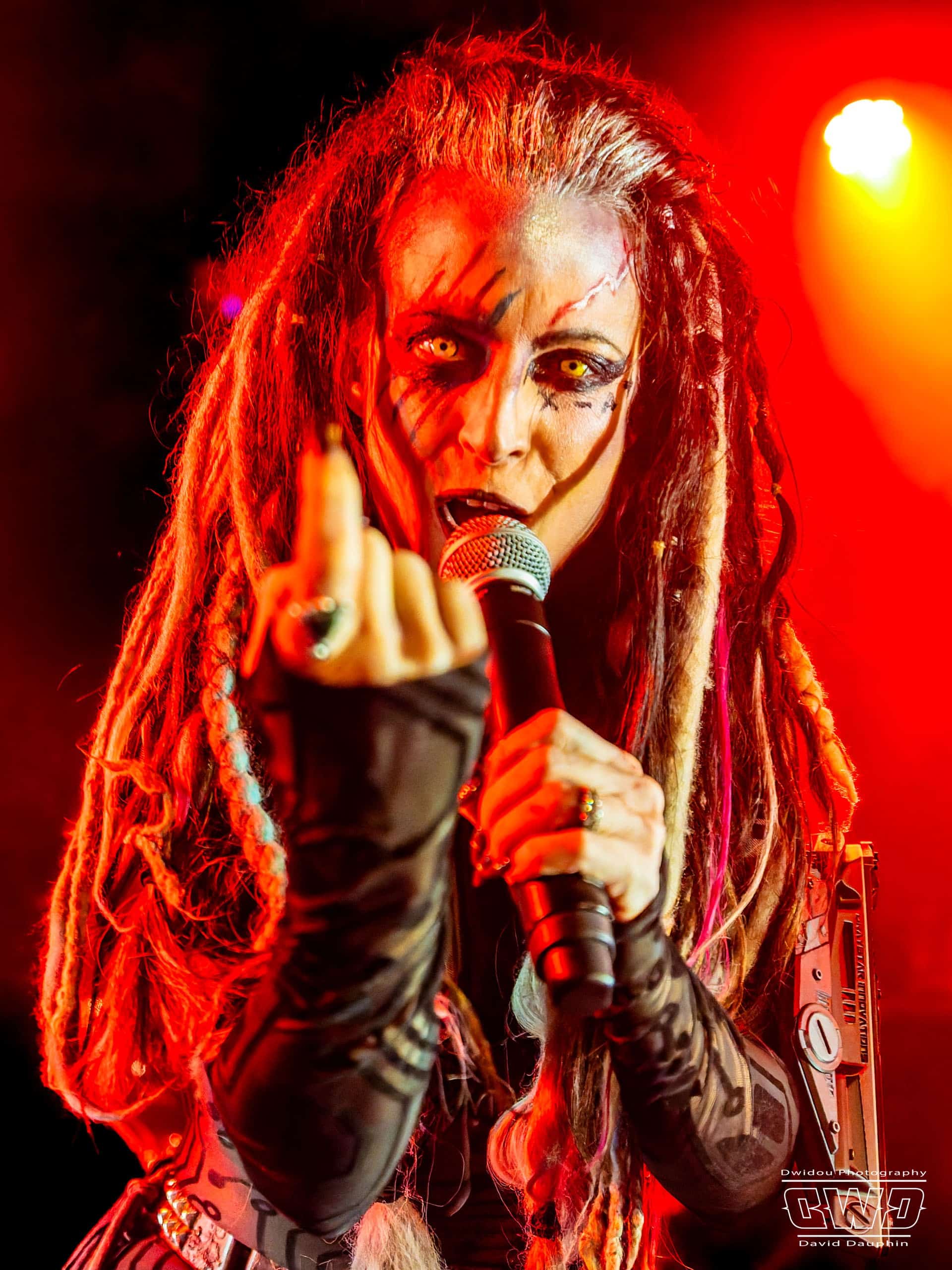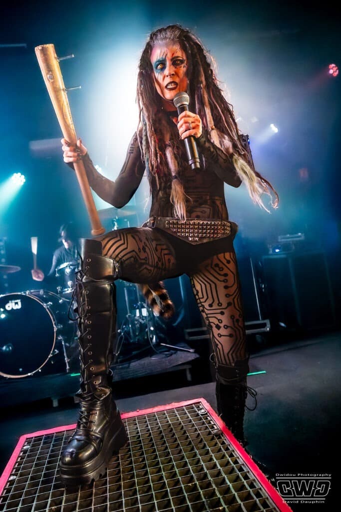 Après une fort belle entrée en matière avec « Run For Your life », le show de Beasto Blanco prend toute son ampleur avec le phénomène « Calico » sur scène. Calico Cooper, fille d’Alice, joue un rôle de performeuse très mise en avant par le groupe. Et sa tenue de scène et ses accessoires sont là pour attirer le regard de chaque spectateur : body transparent moulant, énorme coiffe de dreadlocks, batte de base-ball cloutée, multiples accessoires laser jusque dans la bouche !