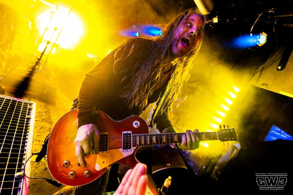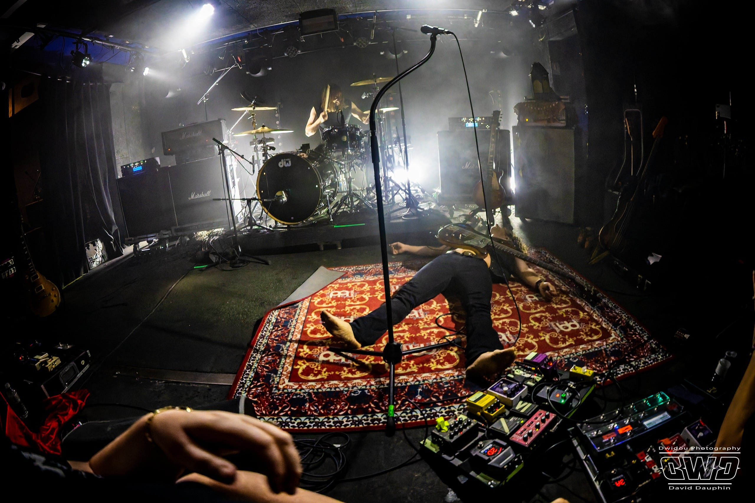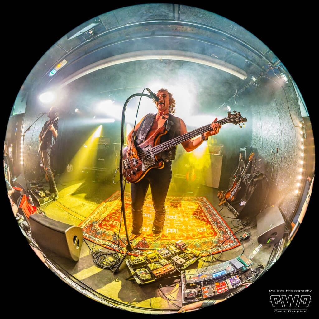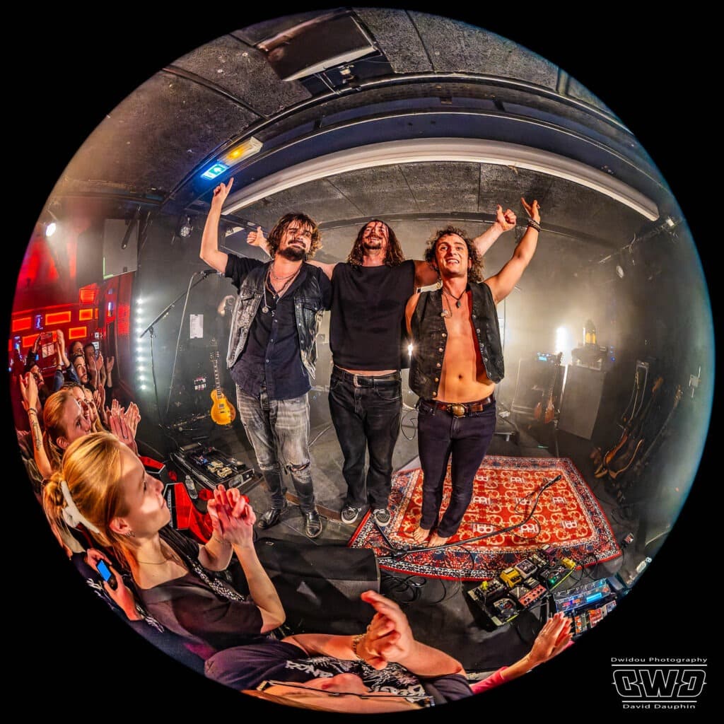 Ce soir ne dérogera pas à cette habitude. Avec un set de 45mn, Dätcha Mandala entre dans le vif du sujet dès l’entame. Bien qu’on les associe régulièrement au revival Rock Seventies, leur répertoire est plus large que cela. Bien sûr on pense par moment à la légende Led Zeppelin en les écoutant, mais lorsque le trio fait parler la poudre, ils n’ont rien à envier aux mastodontes du Metal Moderne.