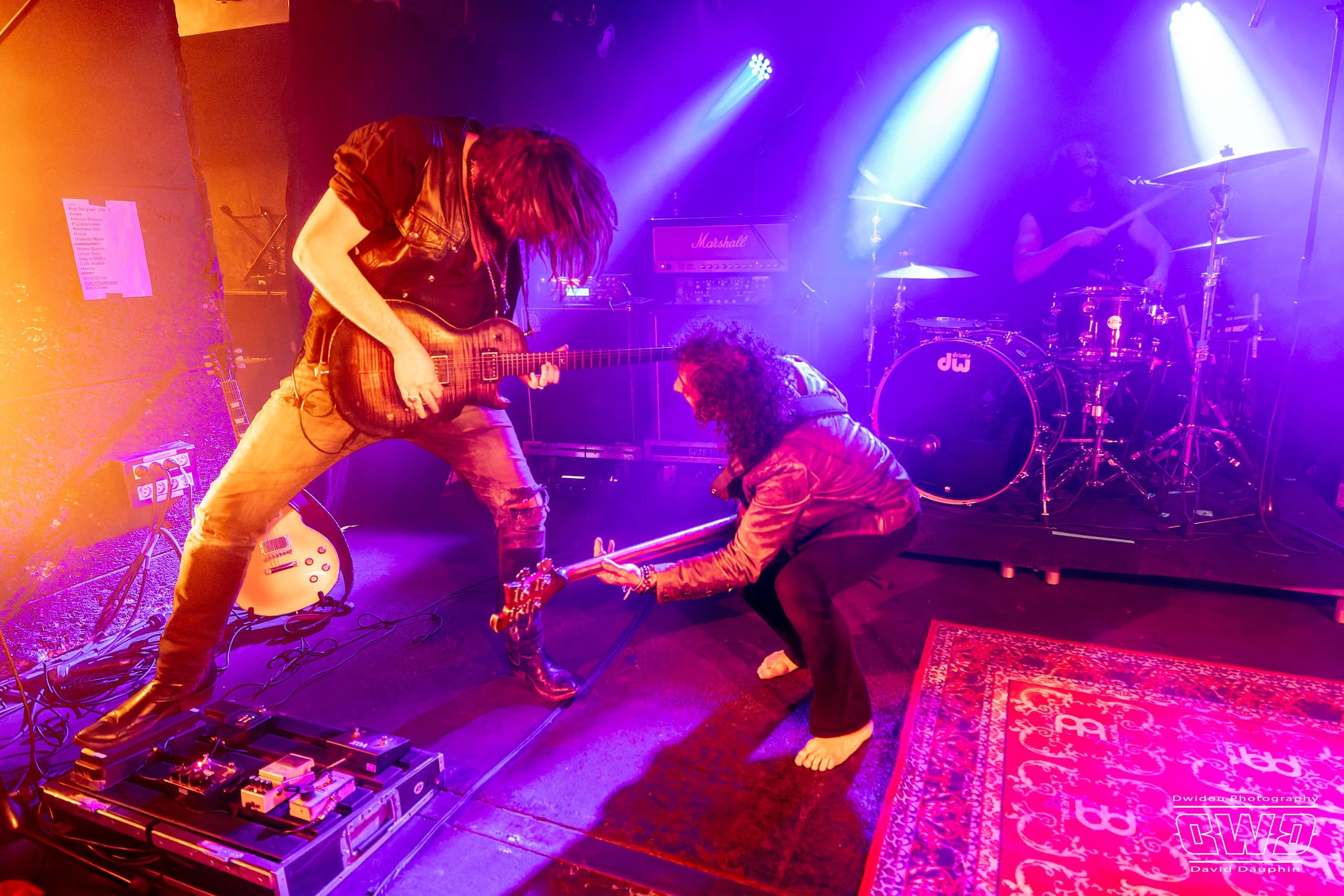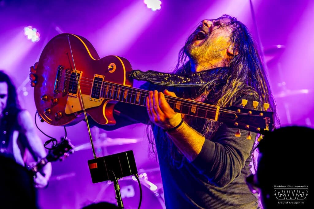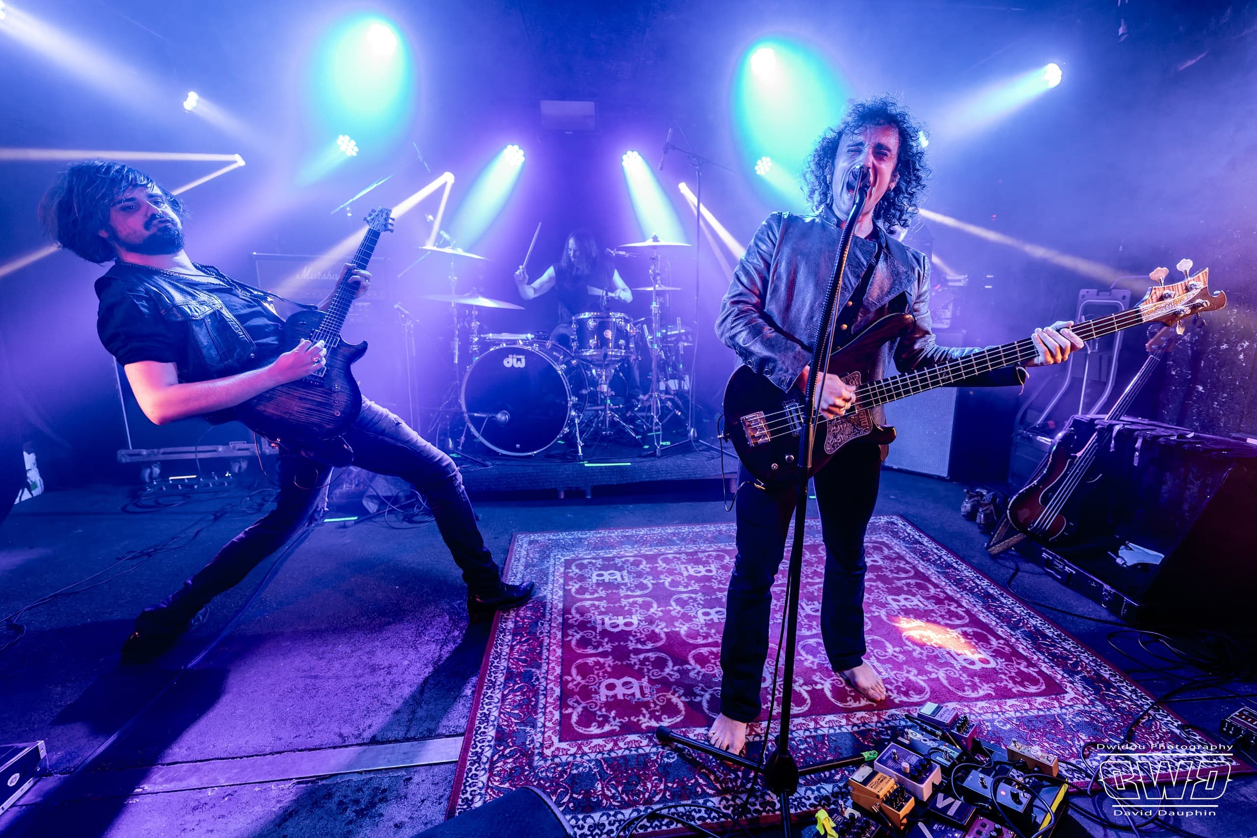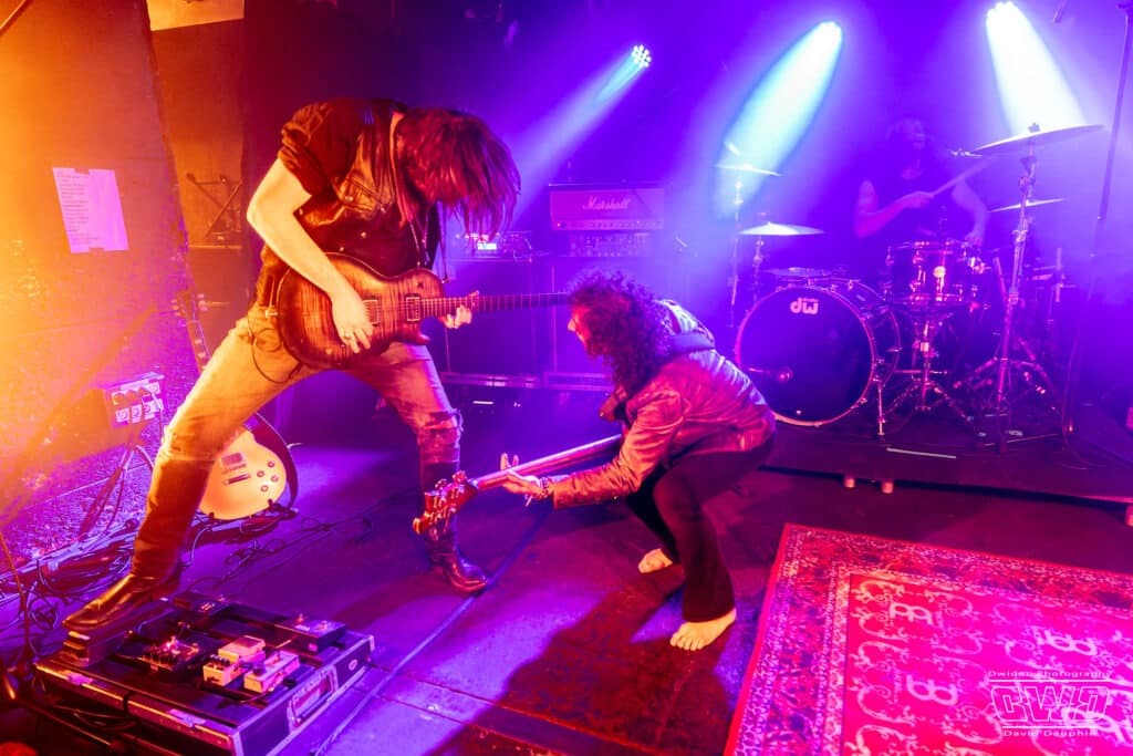 Ce soir ne dérogera pas à cette habitude. Avec un set de 45mn, Dätcha Mandala entre dans le vif du sujet dès l’entame. Bien qu’on les associe régulièrement au revival Rock Seventies, leur répertoire est plus large que cela. Bien sûr on pense par moment à la légende Led Zeppelin en les écoutant, mais lorsque le trio fait parler la poudre, ils n’ont rien à envier aux mastodontes du Metal Moderne.