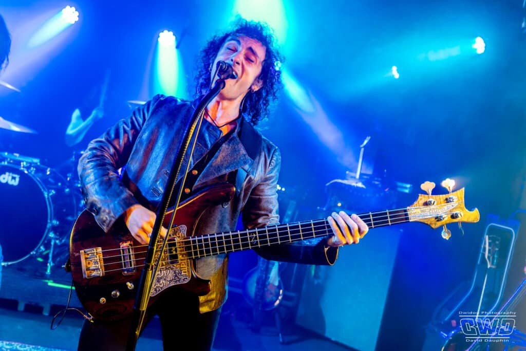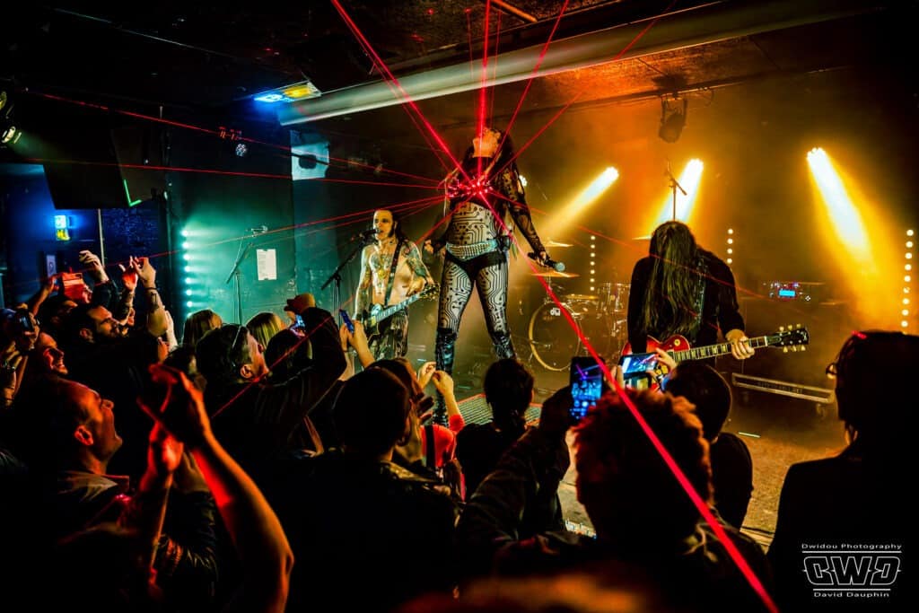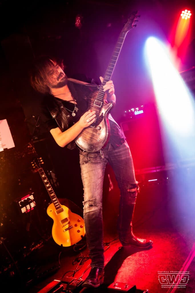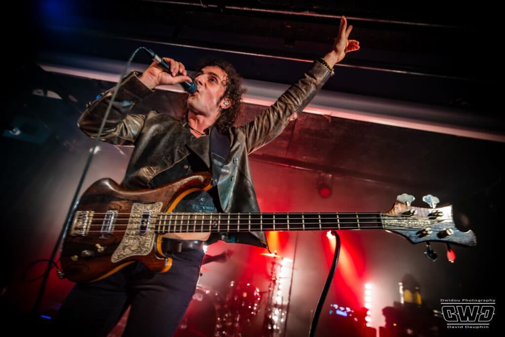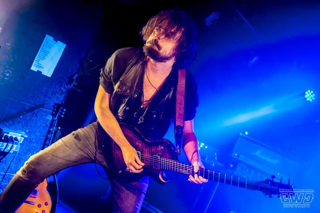 Ce soir devant une poignée de personne (on se demande si le public parisien va finir par arriver…) le groupe se livre sans retenue comme s’il jouait devant des milliers de personnes. Alors que JB à la batterie est un peu dans la pénombre en fond de scène, devant, Nicolas au chant et à la basse, et Jérémy à la guitare sont ultra mobiles donnant vie à leurs compositions qui font mouche auprès du public, par forcément venu pour eux .