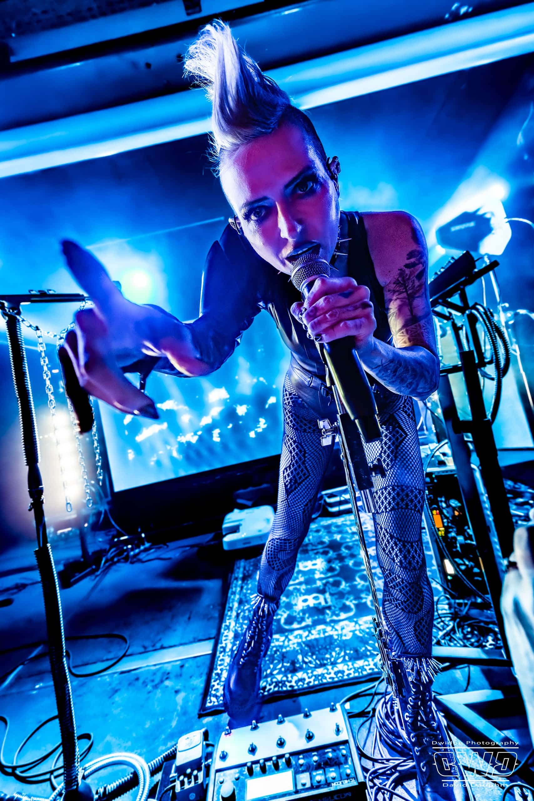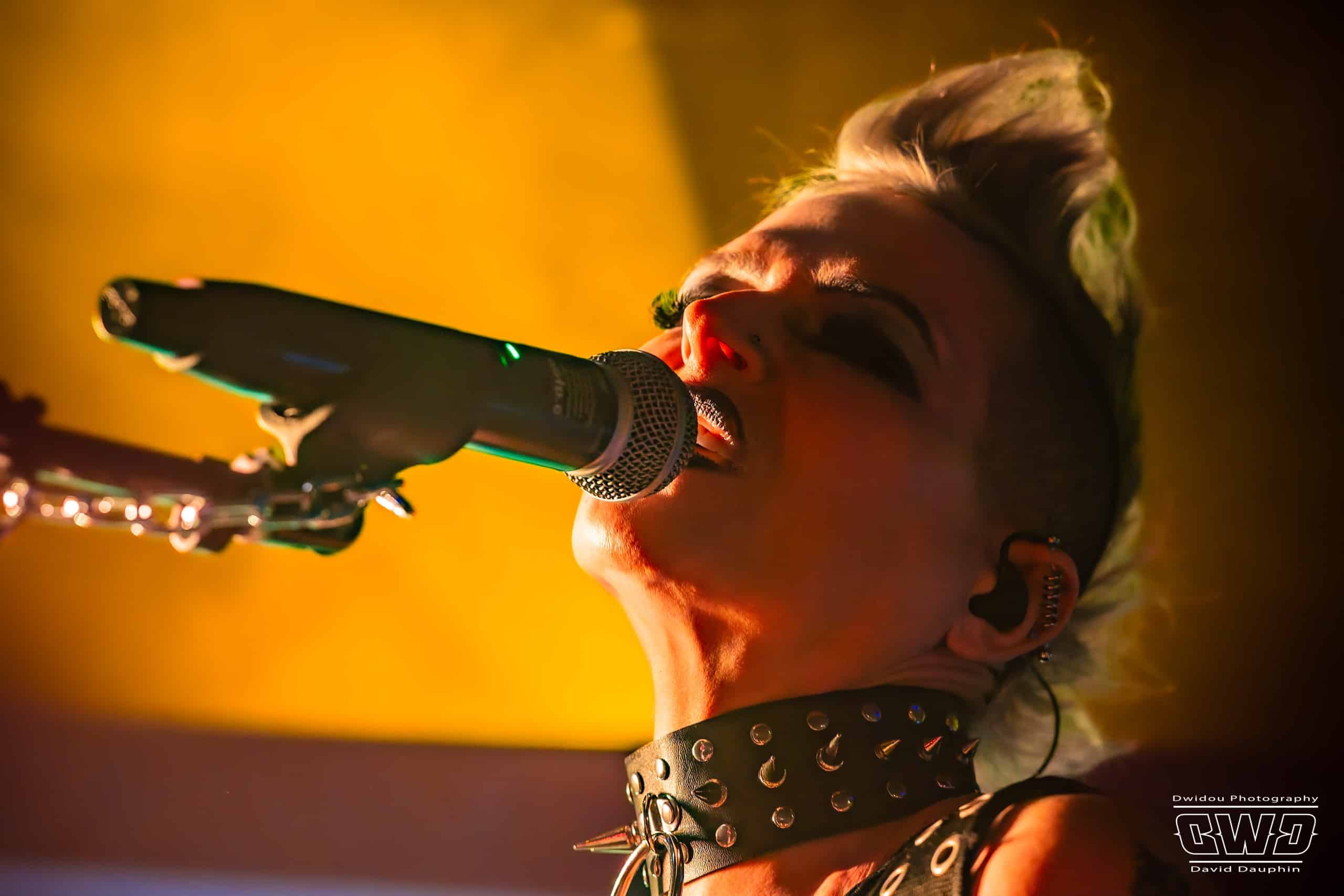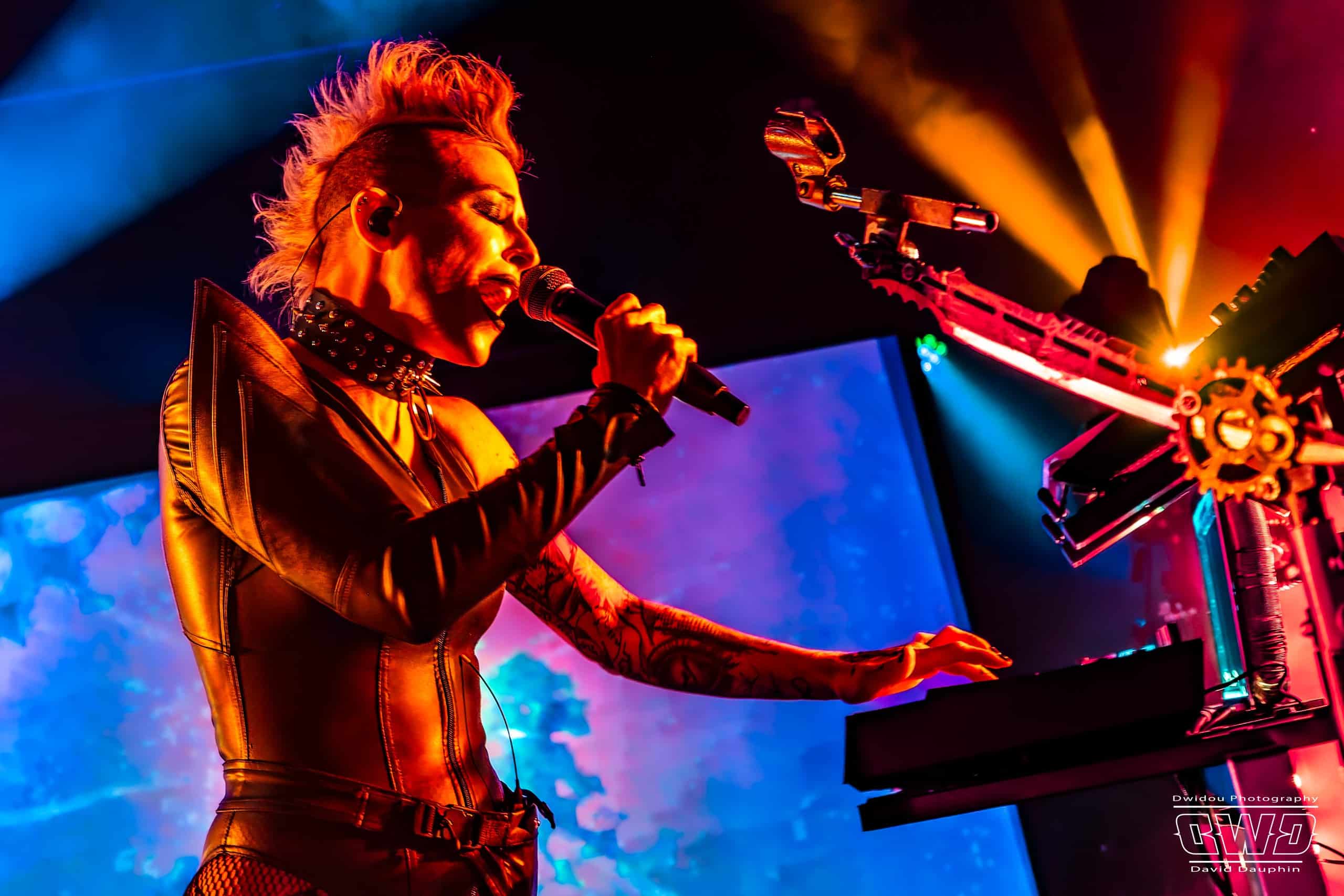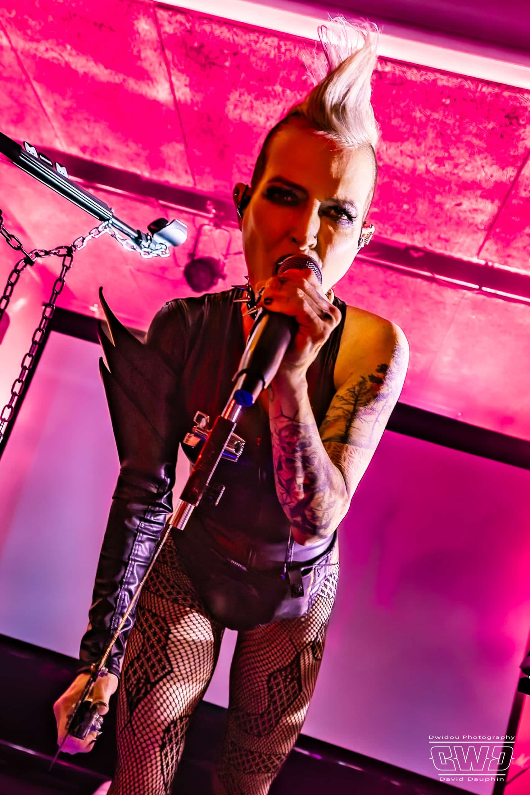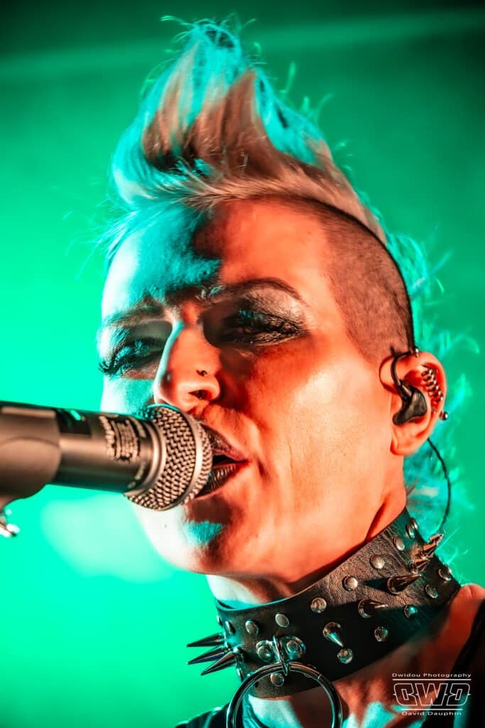 Il est 19h30 lorsque l’artiste américaine entre en scène. Malgré ce début de soirée à une heure pas trop tôt, I Ya Toyah va se produire devant une poignée de spectateurs, 3 dizaines seulement. Cela ne semble pas la perturber. L’artiste solo chante, joue de la guitare, un peu de claviers, le tout sur fond de bandes sonores et samples programmés. I Ya Toyah joue un maximum sur l’effet visuel de son show : court vétue, crête, collier clouté, et light show plongeant les spectateurs dans un univers sombre.