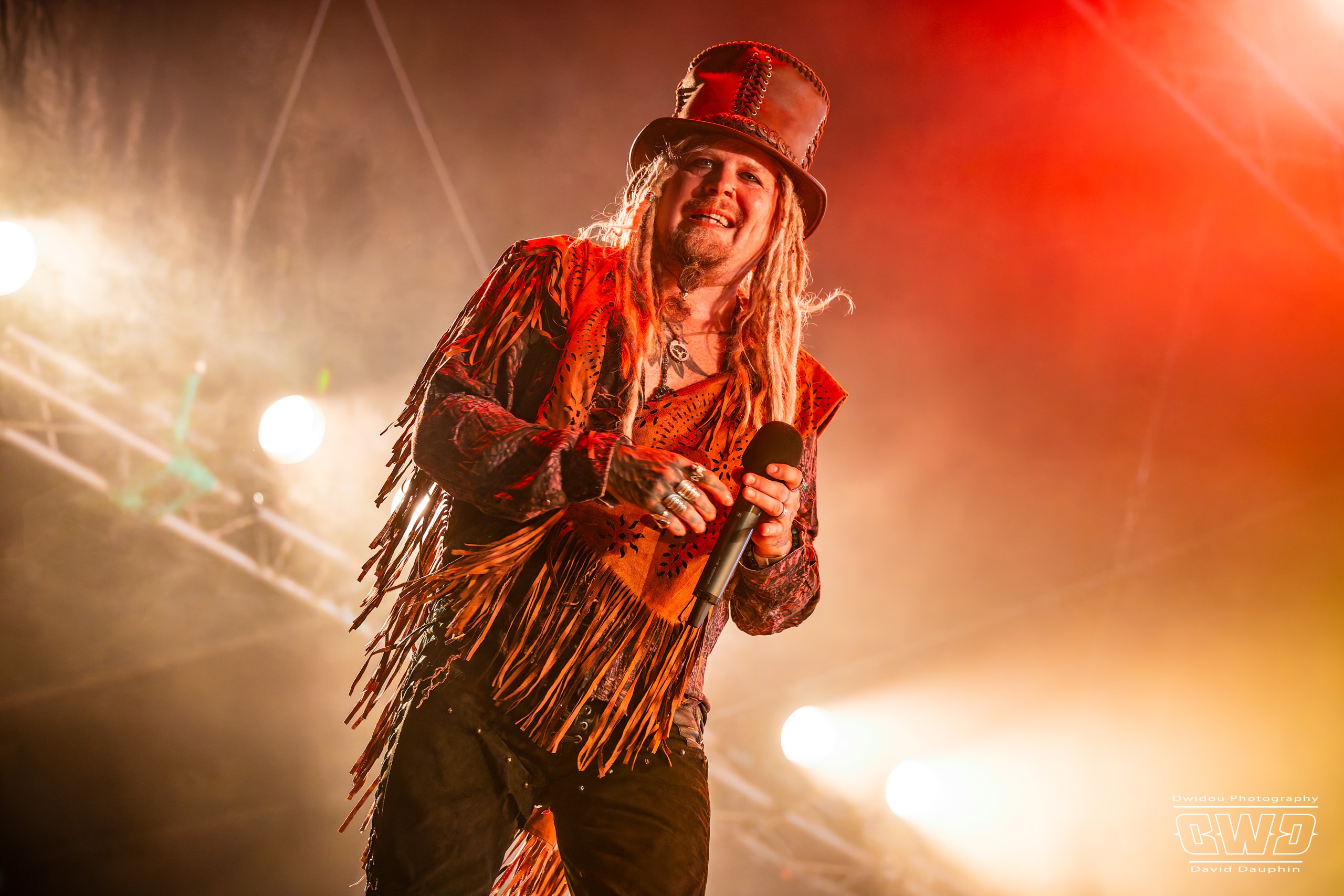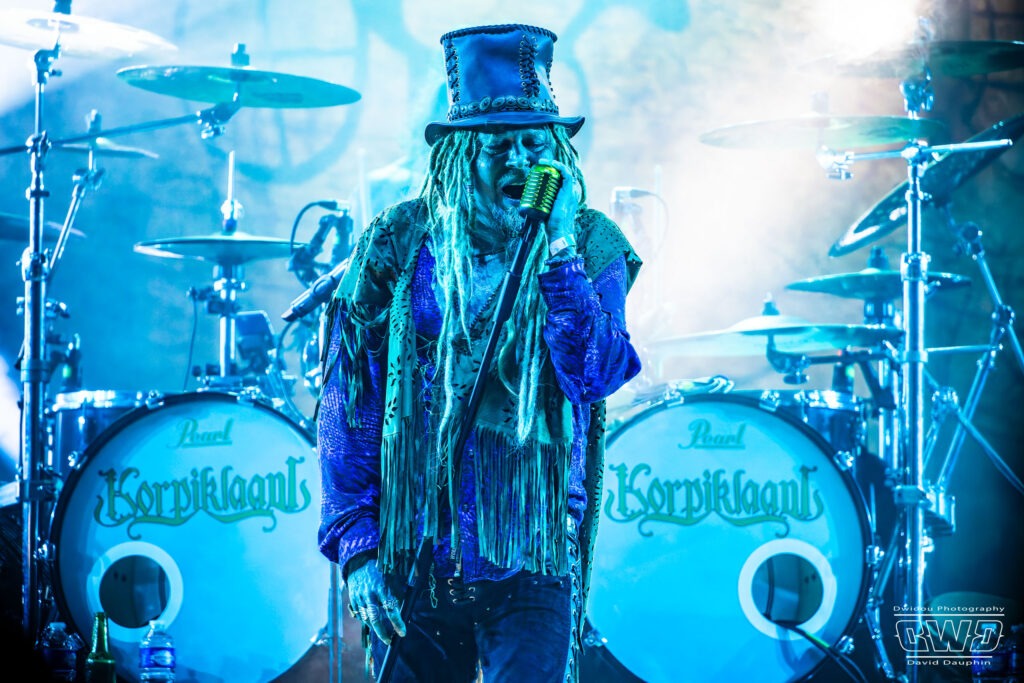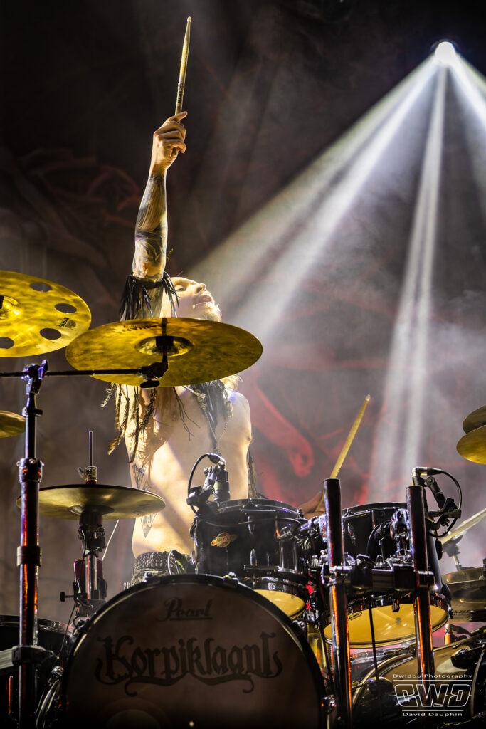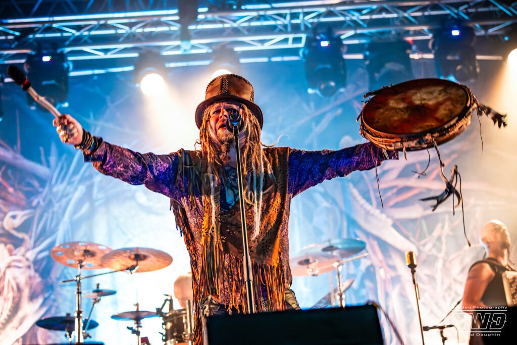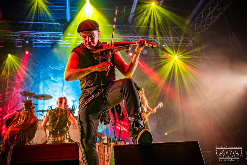 Il est maintenant l’heure du dernier concert avec la tête d’affiche de cette première journée du Festival 666 : Korpiklaani. Le groupe qui évolue dans un folk-metal finlandais, clôture cette journée dans la joie et la bonne humeur, transformant le site en une immense taverne à ciel ouvert. Le frontman Jonne se régale de cette ambiance, tout comme le public qui est resté tard pour assister à la prestation des finlandais.