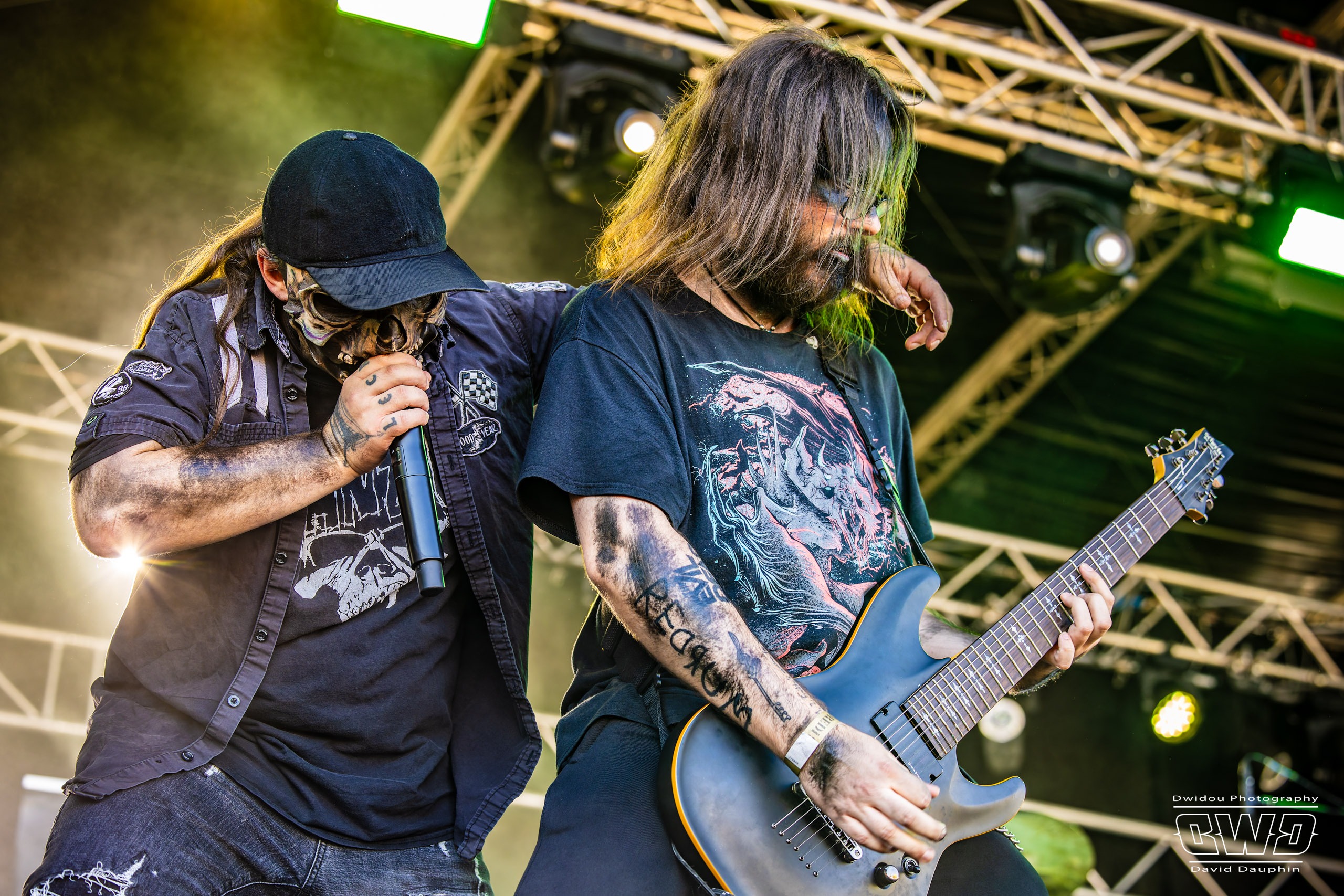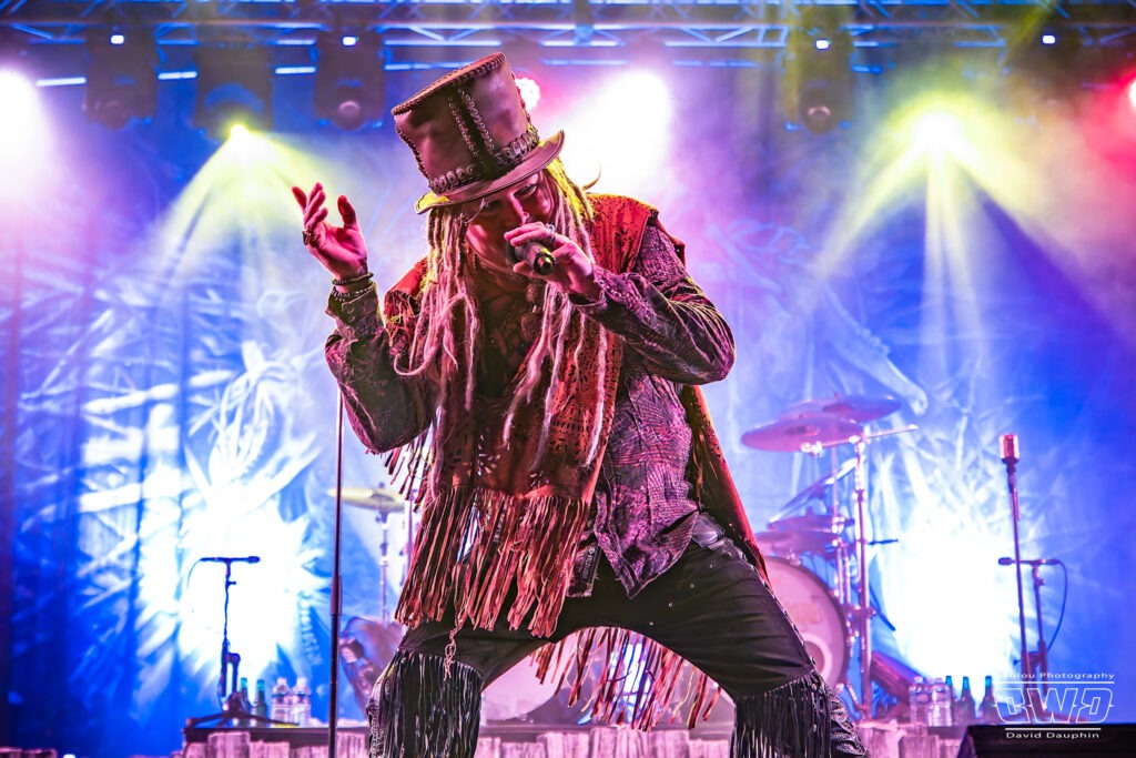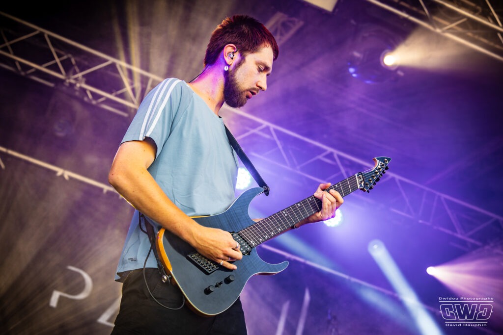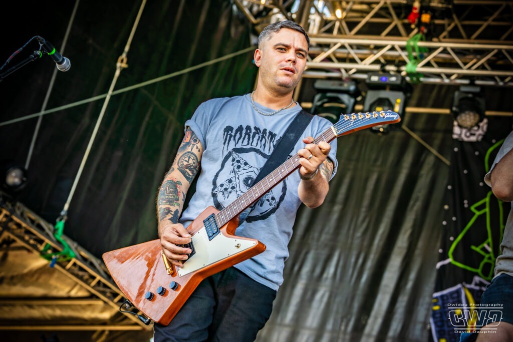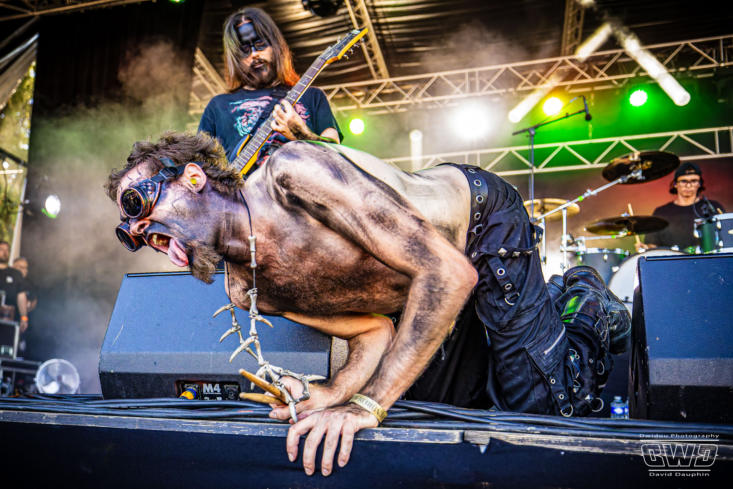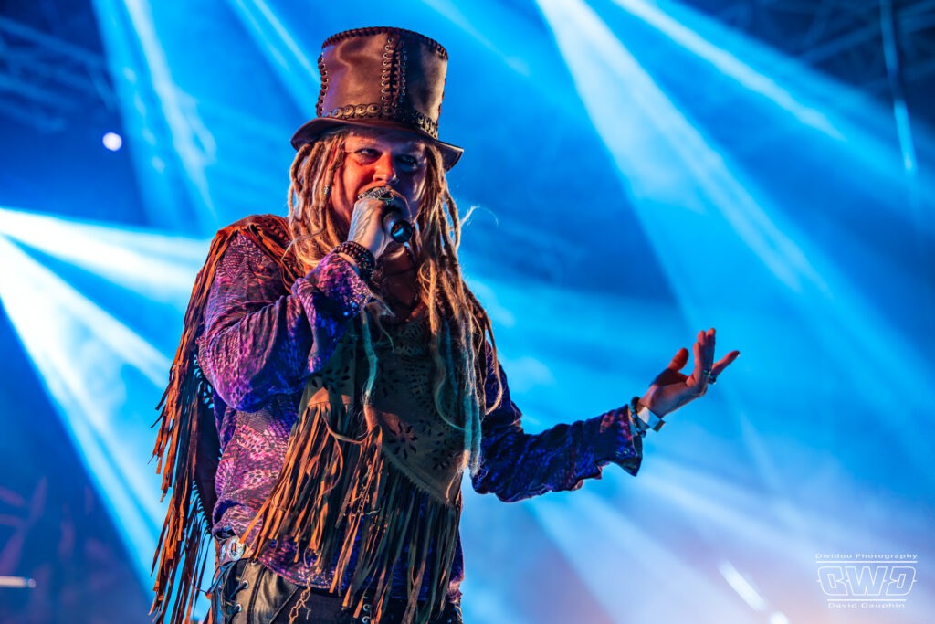 Changement de scène et changement d’ambiance avec les marseillais de Lecks Inc. Le groupe envoie un lourd Metal Indus qu’il a déjà gravé sur 2 albums en 2022 et 2023. Les musiciens entièrement grimés font sensation auprès des festivaliers. 2 percussionnistes complètent une formation traditionnelle (Basse, batterie, 2 guitares et chant) et font le show au milieu de la troupe.