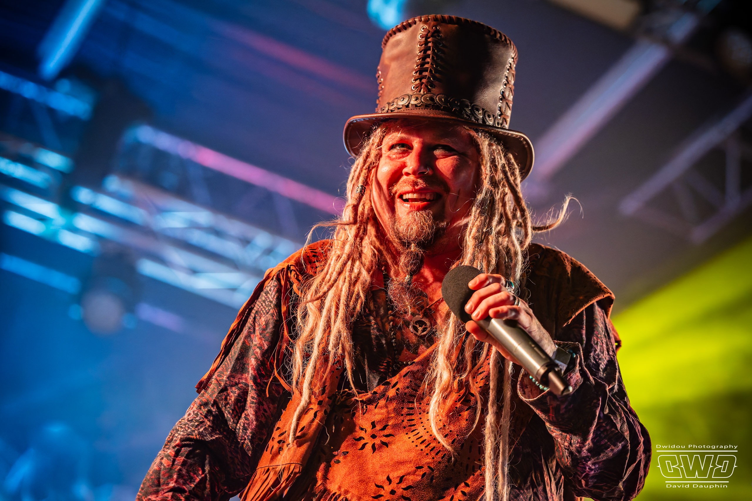 Après du Hardcore et du Metal Indus, place à une grosse dose de fusion celtique. Décidément, Victor Pépin nous avait promis une édition plus éclectique que les précédentes, et ca démarre plutôt bien dans ce sens. Les 5 musiciens de Rue de la Forge se présentent sur scène comme des guerriers gaulois, et ils vont nous faire la guerre, en français dans le texte. Le public reprend facilement les refrains des compositions entrainantes du groupe. Visuellement, à l’instar de Lecks Inc. Les musiciens sont eux aussi maquillés pour coller au maximum à leur univers.
