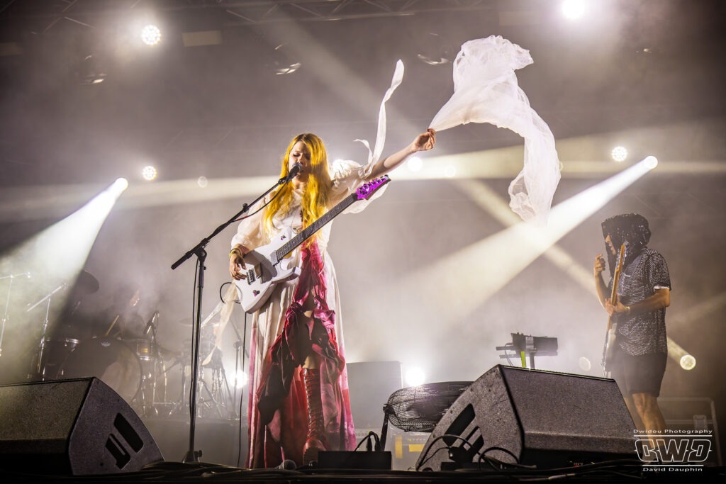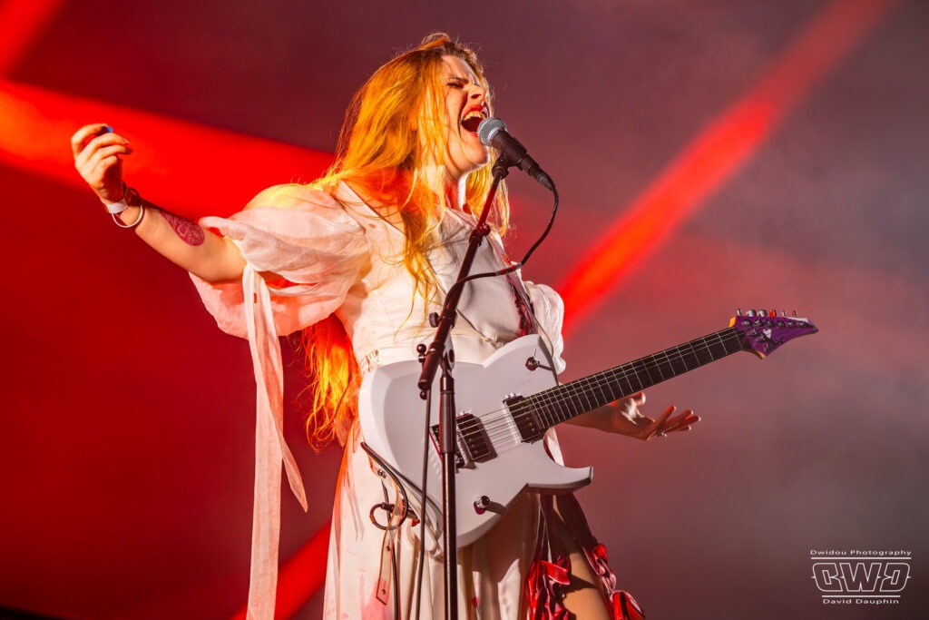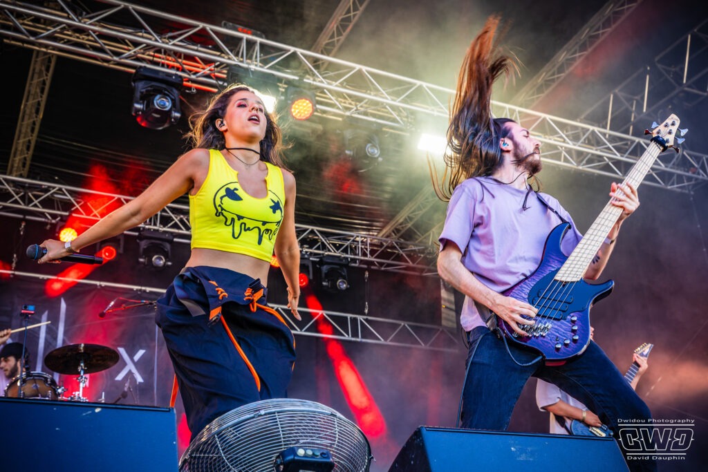 Place maintenant à un OVNI sonore sur l’affiche de cette cinquième édition : Sun Brutal Pop emmené par la chanteuse-guitariste franco-allemande Karoline Rose. La chanteuse nous propose un style complètement personnel avec son mélange de Pop bien catchy et de Metal au chant screamé !