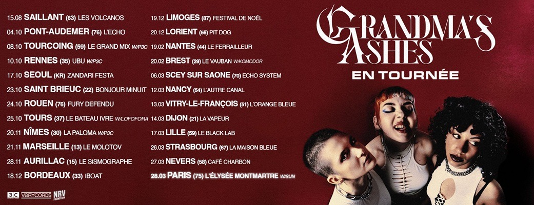 GRANDMA’S ASHES a partagé le clip de SAINTS KISS, nouveau single extrait de son nouvel album BRUXISM qui sort le 24 octobre 2025 chez Verycords