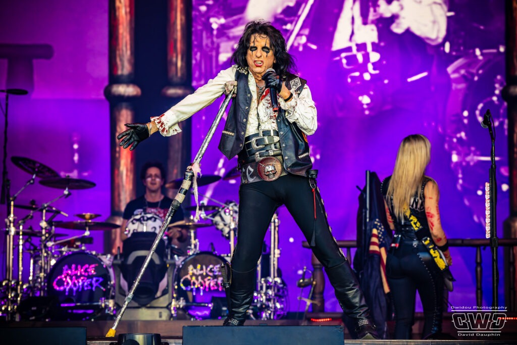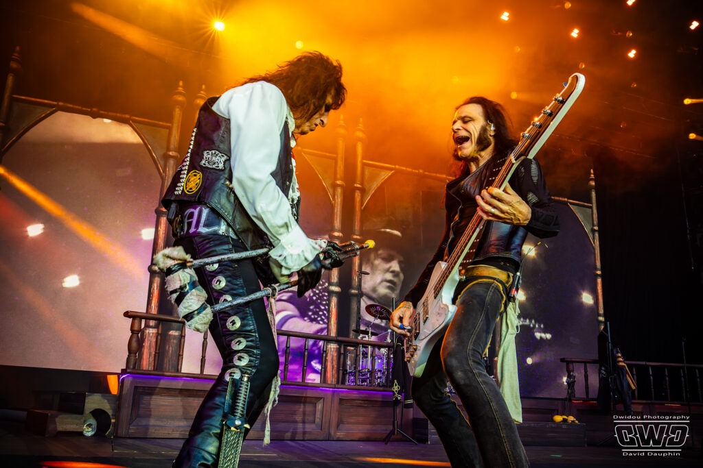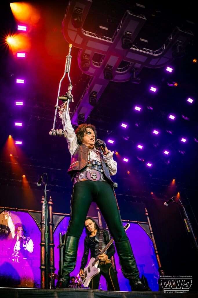 Issu de son dernier album Road paru en 2023, Welcome to The Show retentit. Bourré d’énergie, il met immédiatement le public dans l’ambiance. Alice Cooper va ainsi transporter les auditeurs à travers ses albums classiques tout en ajoutant quelques mises en scène inspirées de films d’horreur . Artiste iconique il a su s’entourer de musiciens de renom. Le fameux trio de guitaristes, Ryan Roxie, Nita Strauss et Tommy Henriksen, auquel vient s’ajouter la section rythmique constituée de Chuck Garric à la bassse et Glen Sobel à la batterie.
