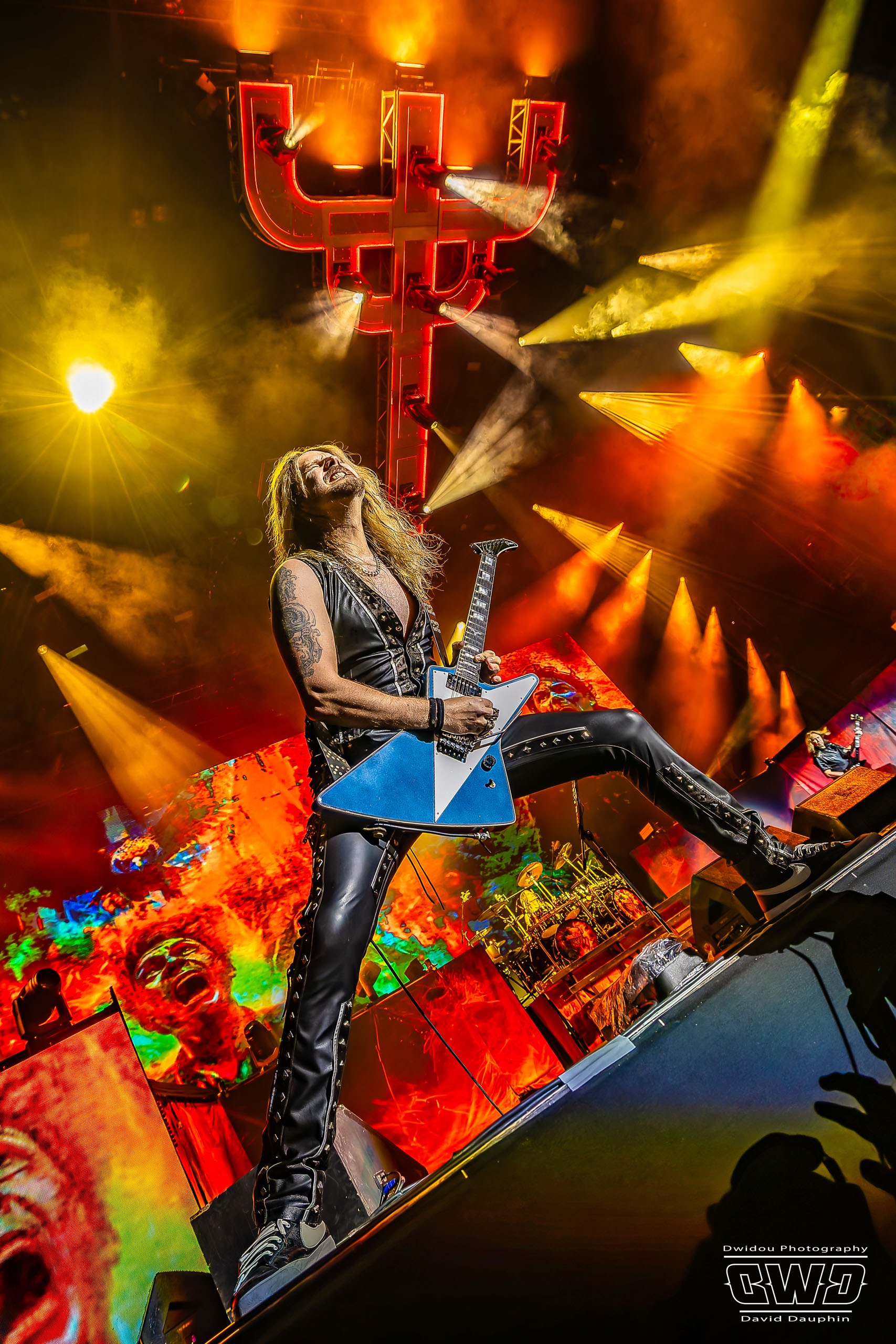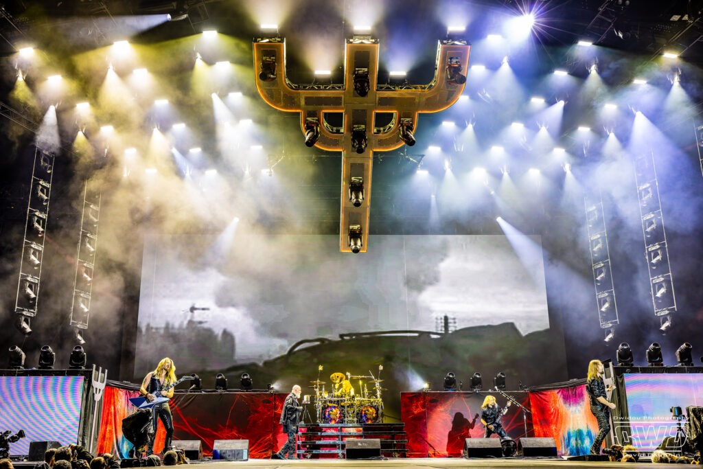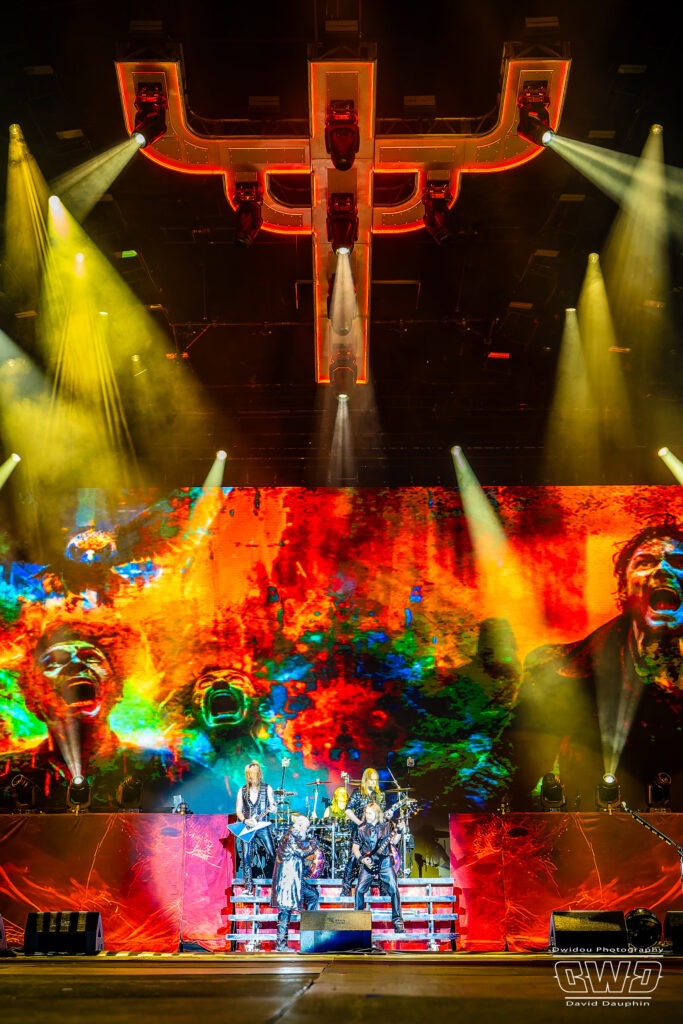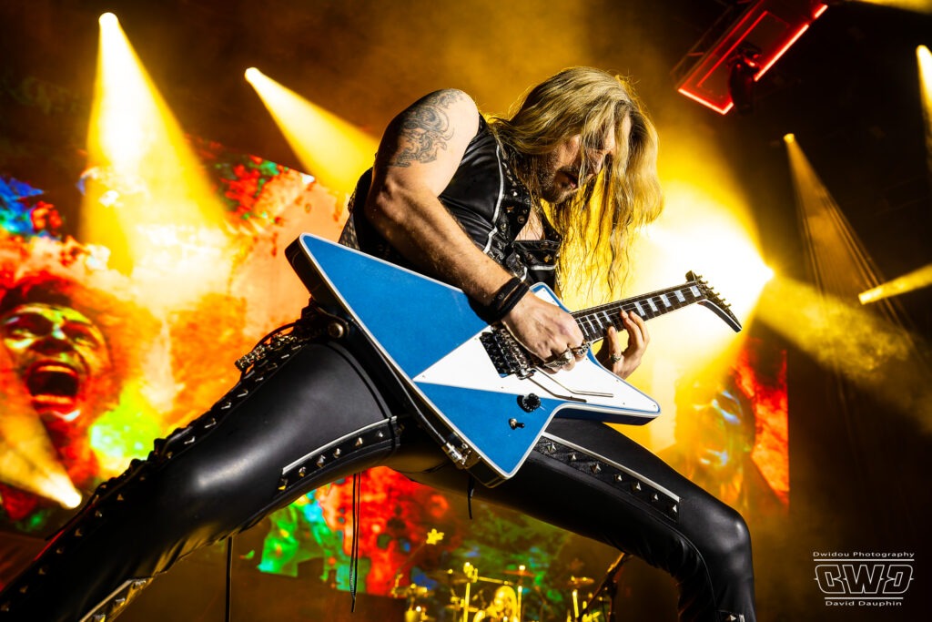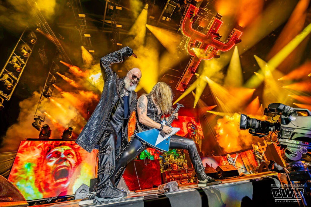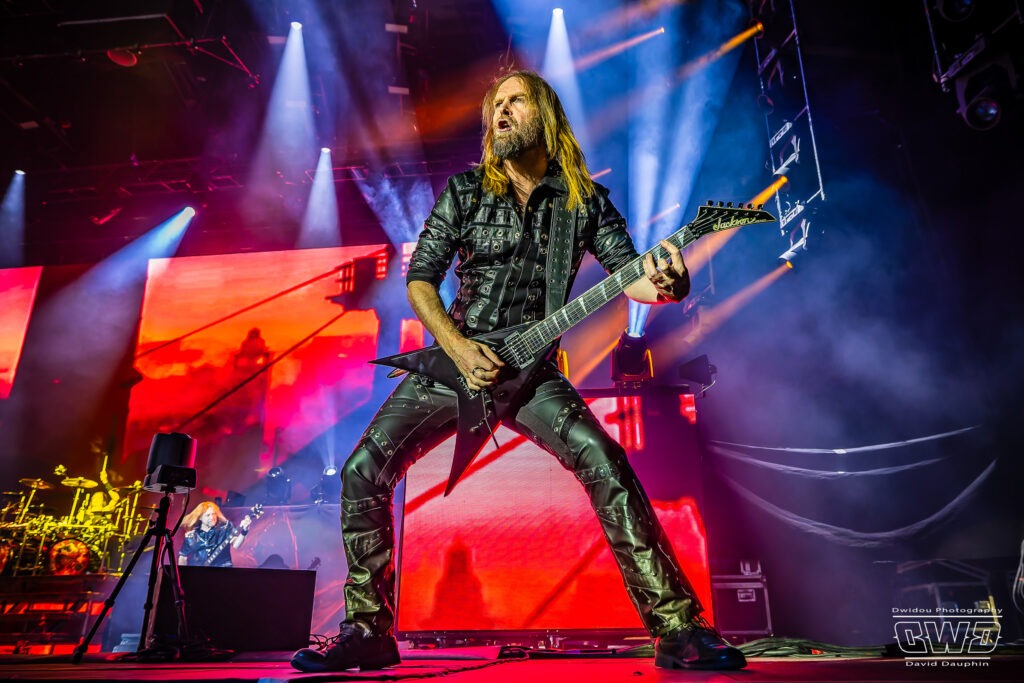 Ritchie Faulkner nous livre des solos d’enfer, accompagné de son acolyte depuis 2018, Andy Sneap, suppléant de Glenn Tipton. A la fin du titre «Victim Of Changes», Glenn apparaît sur l’écran de la scène et le groupe le salue. Un clin d’œil touchant pour nous rappeler qu’il est toujours présent en dépit de la maladie.