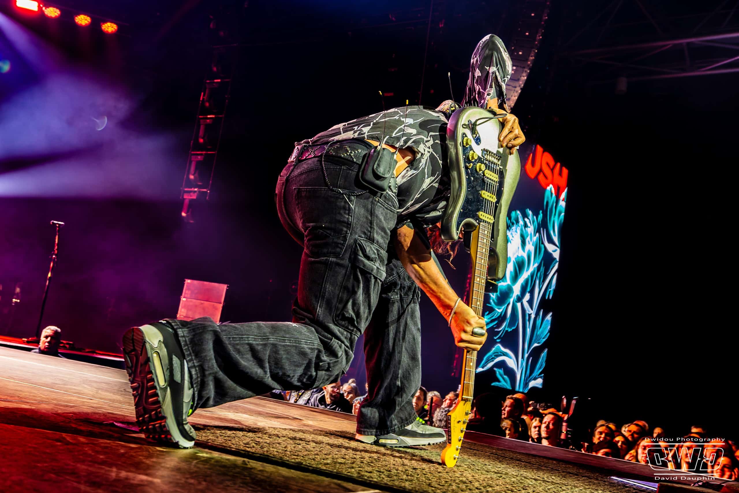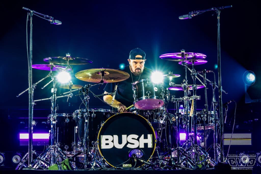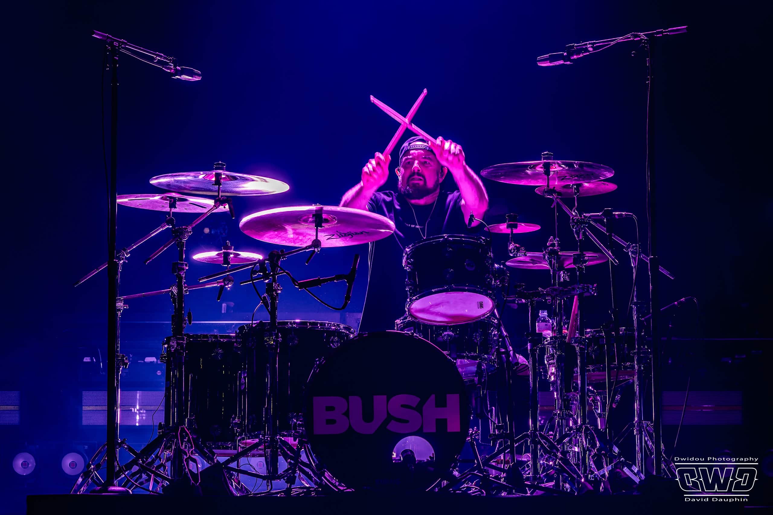 A 19h50 les vétérans de Bush entrent en scène et vont faire monter l’ambiance du Zénith. Arrivés en pleine vague Grunge en 1992, ils sortent leur premier album «Sixteen Stone» en 1993 qui contient leur éternel hit « Everything Zen ». C’est avec ce titre emblématique que le concert débute, et ce sera l’unique témoin de cette époque. En effet le groupe à aujourd’hui 10 albums à son actif et vient nous présenter son petit dernier « I Beat Loneliness » dont trois morceaux seront joués ce soir.