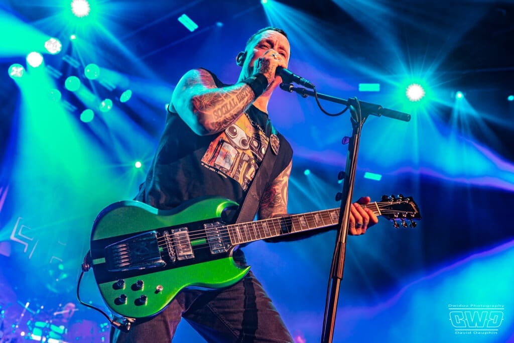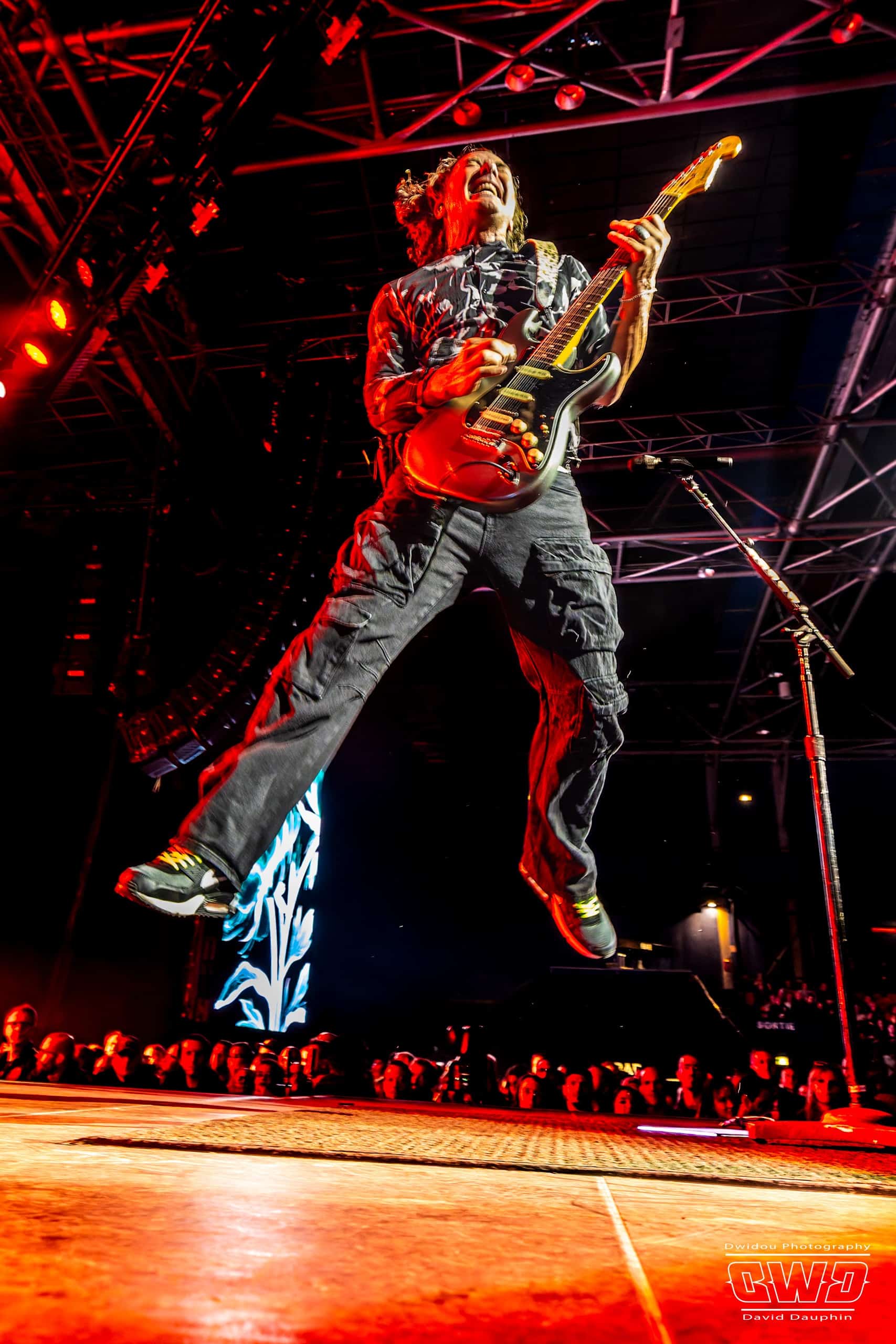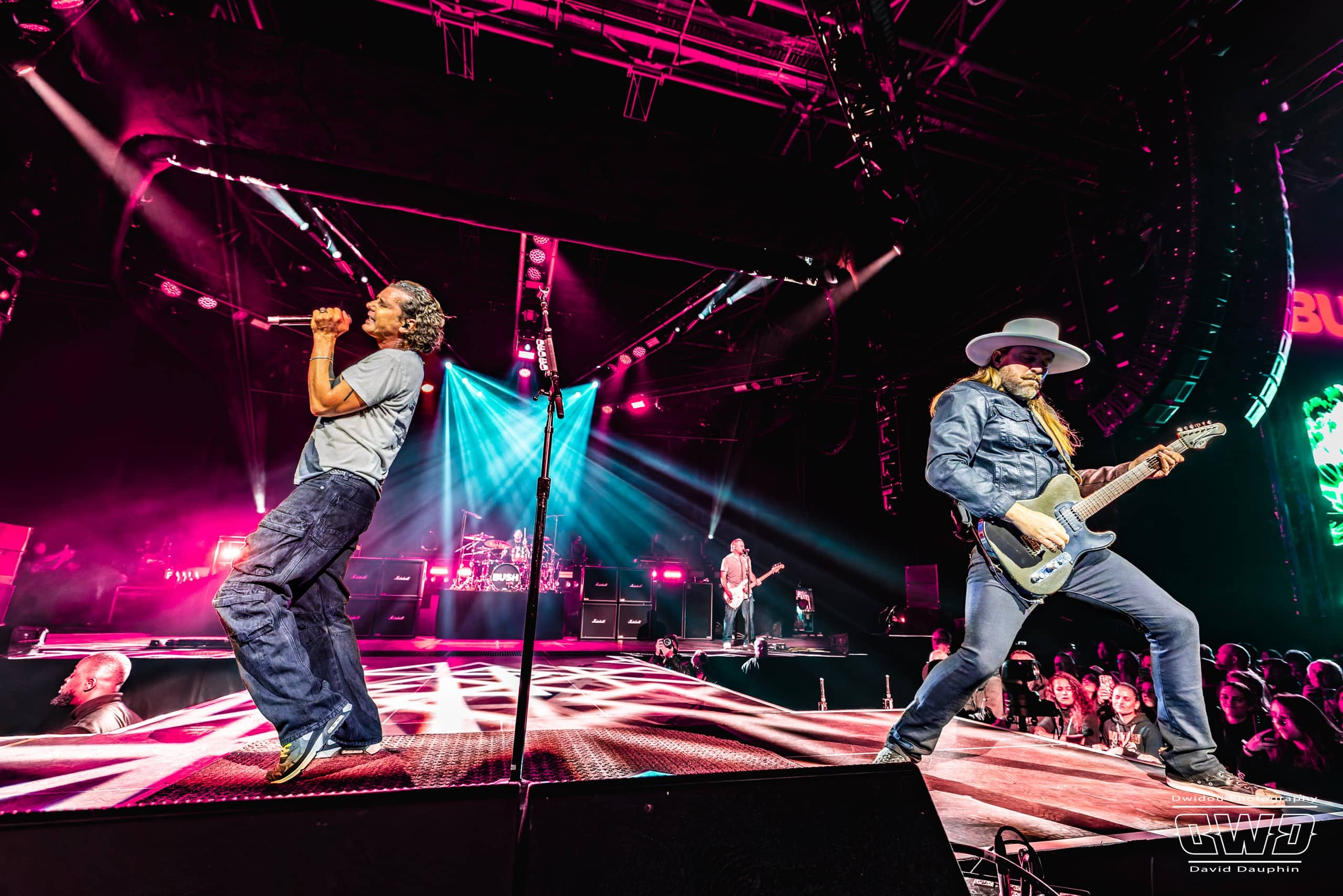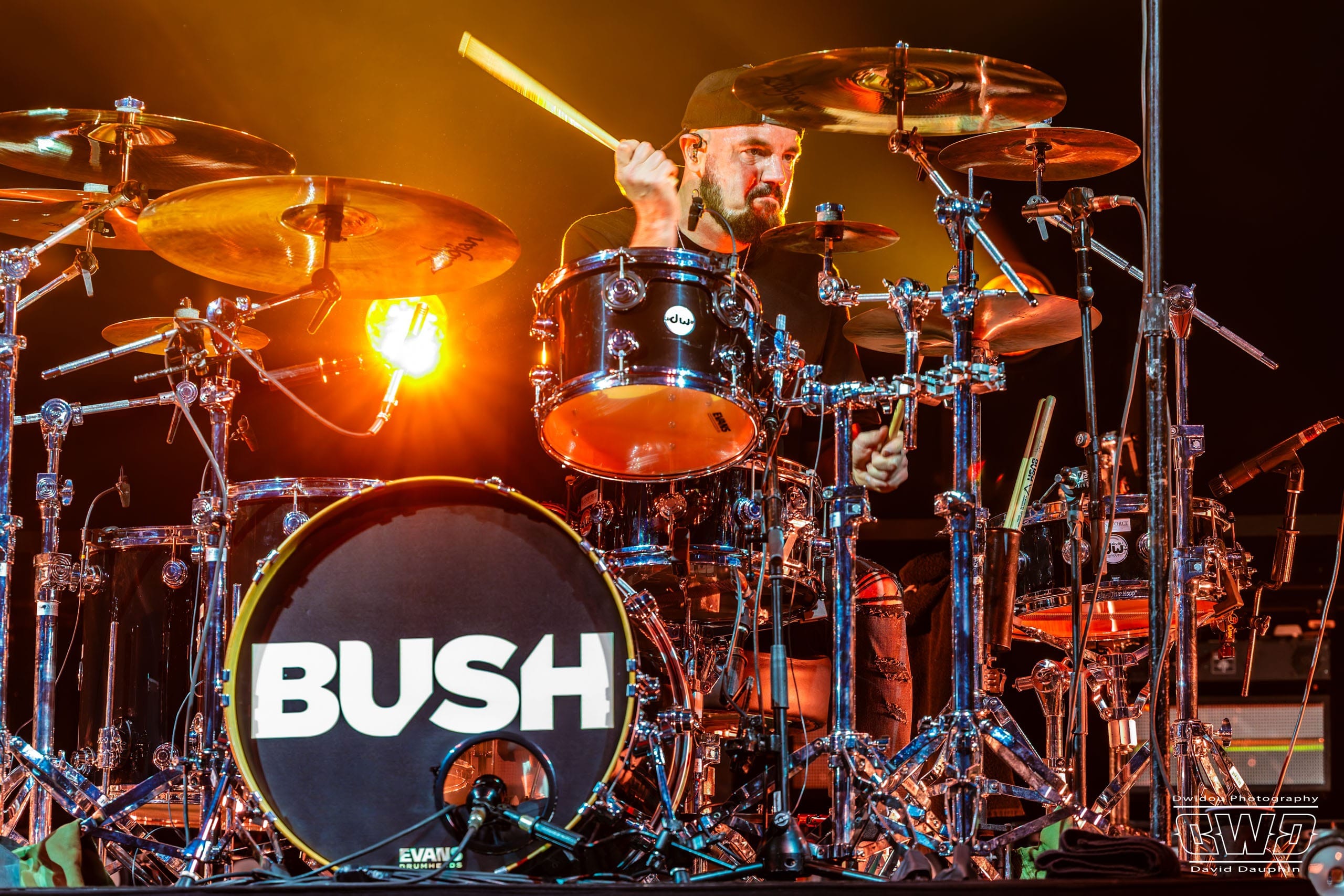 A 19h50 les vétérans de Bush entrent en scène et vont faire monter l’ambiance du Zénith. Arrivés en pleine vague Grunge en 1992, ils sortent leur premier album «Sixteen Stone» en 1993 qui contient leur éternel hit « Everything Zen ». C’est avec ce titre emblématique que le concert débute, et ce sera l’unique témoin de cette époque. En effet le groupe à aujourd’hui 10 albums à son actif et vient nous présenter son petit dernier « I Beat Loneliness » dont trois morceaux seront joués ce soir.