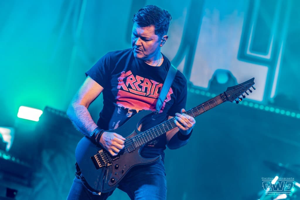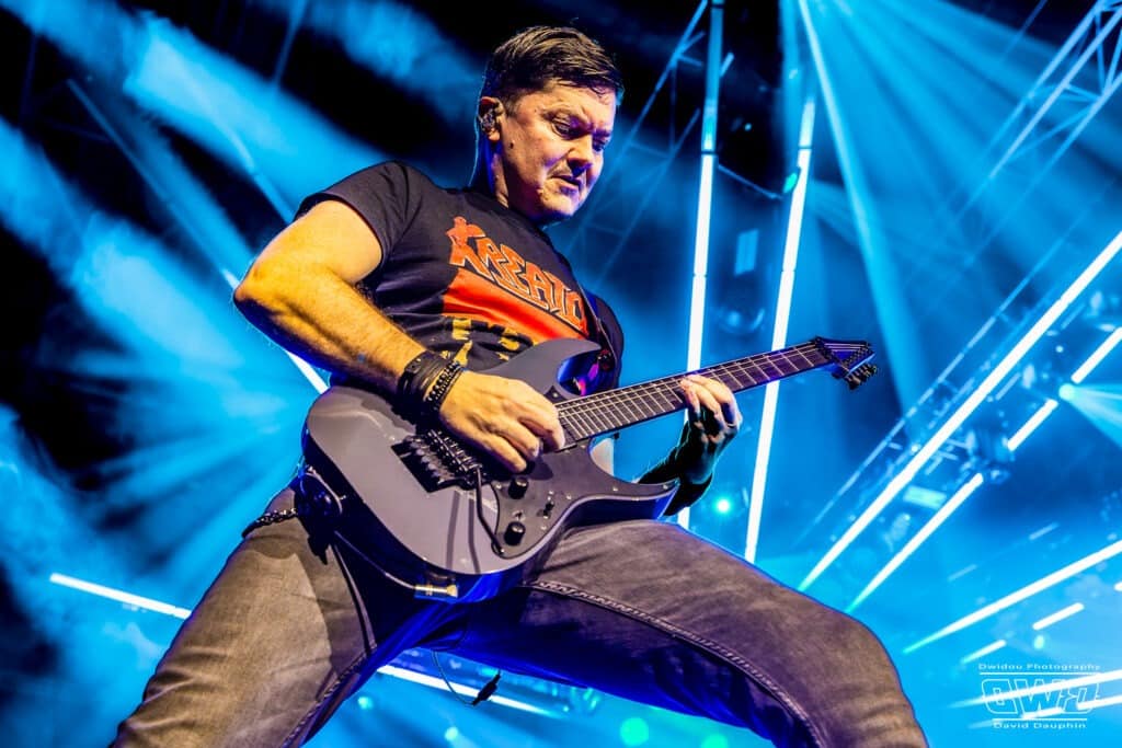 Les deux piliers, membres originels du groupe, Michael Poulsen au chant et à la guitare, et Jon Larsen à la batterie sont accompagnés depuis 2016 par Kaspar Boye Larsen à la basse, et depuis peu par Flemming C. Lund à la guitare. Ce dernier a la lourde tâche de remplacer le talentueux et spectaculaire Rob Caggiano. Même si le style est différent, Flemming s’en sort haut la main et l’entente avec Michael est parfaite. Les deux guitares font la paire.
