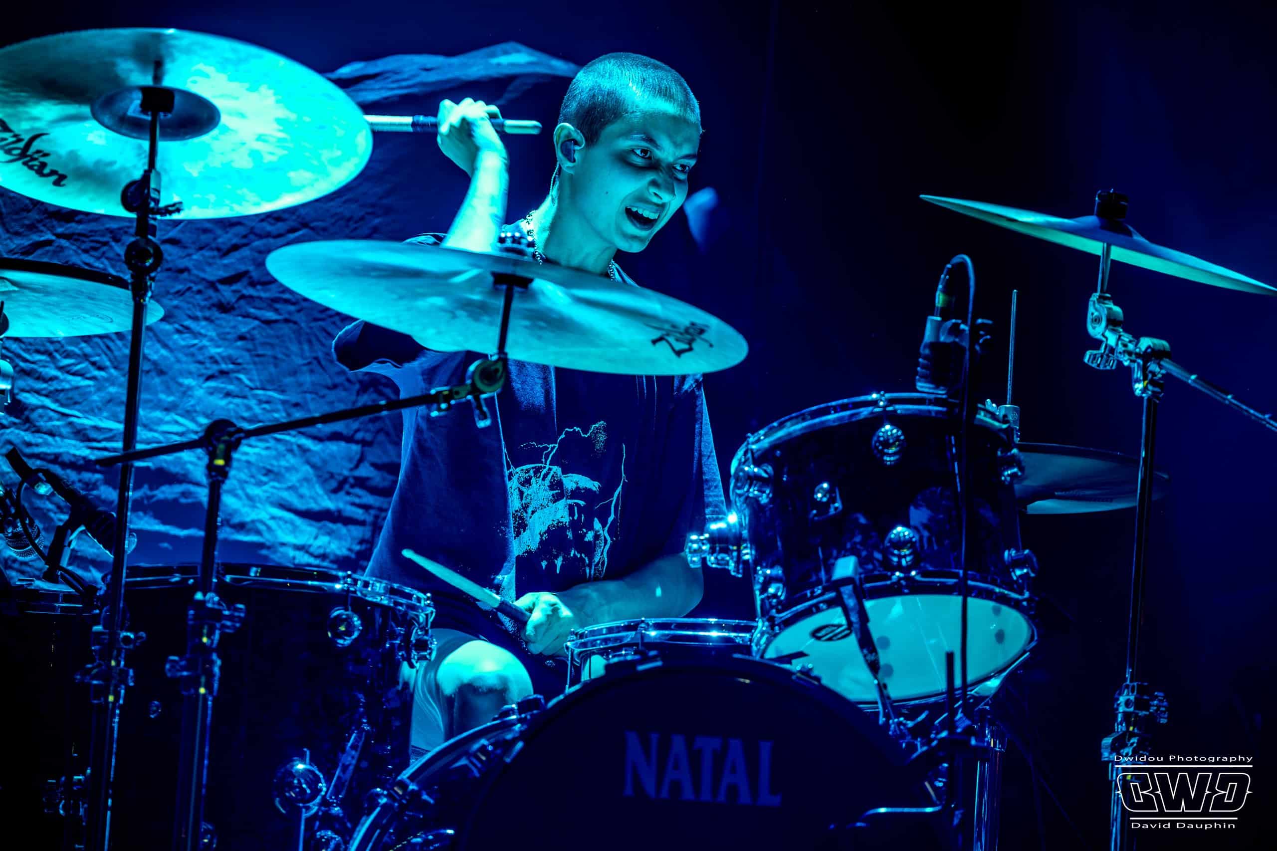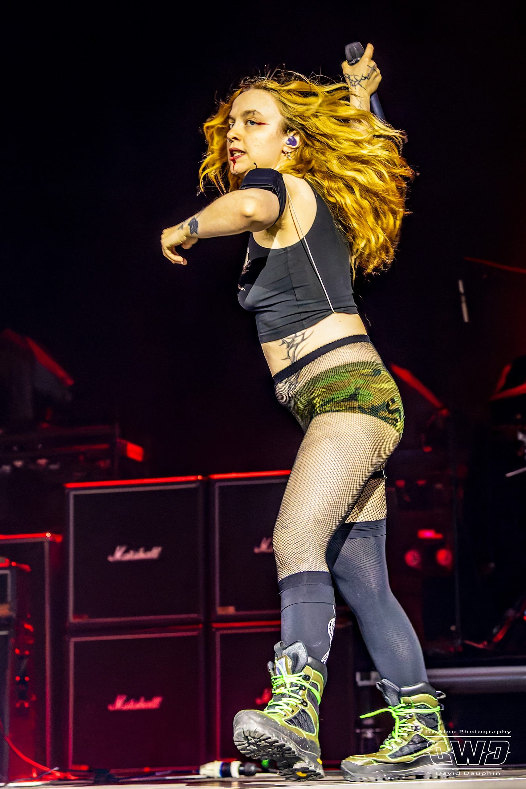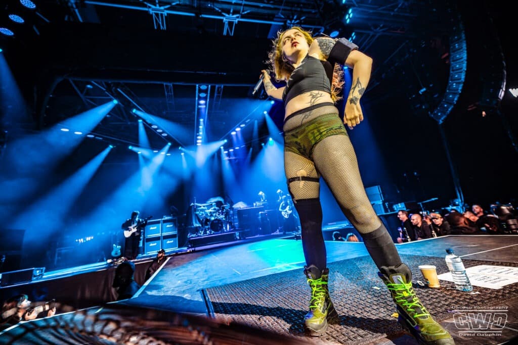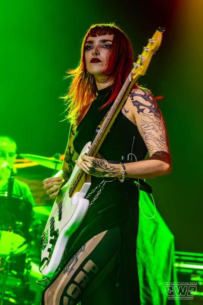 Malgré tout le groupe délivre une prestation sérieuse. Avec une chanteuse lead très présente, rejointe fréquemment par la bassiste sur l’avancée de scène, alors que la guitariste restera très discrète dans son coin à gauche de la scène.